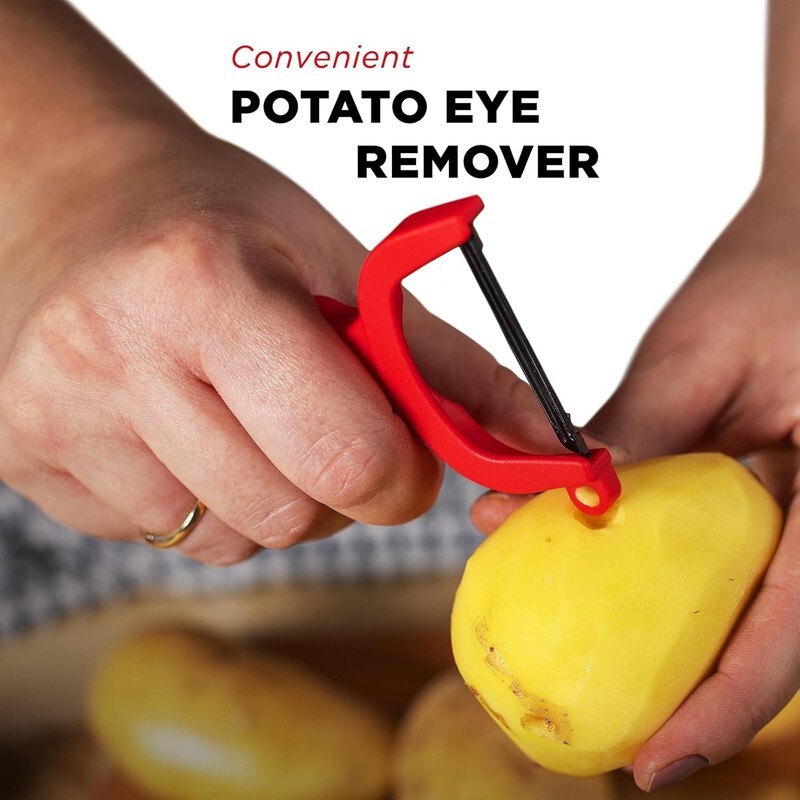 Convenient Ergonomic ? Each peeler features an integrated potato eye remover and a Y-shaped design that works comfortably for both right- and left-handed users.