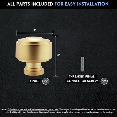Designed exclusively for BLASTHOME Signature Collection curtain rods, these finials provide a seamless, sturdy connection and a refined finished look. Installation is quick and secure using the included 3/8? threaded screws.