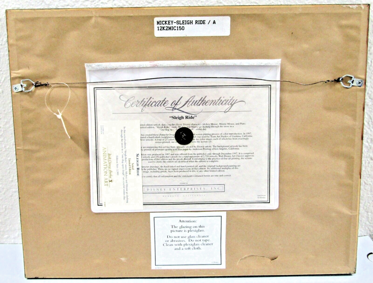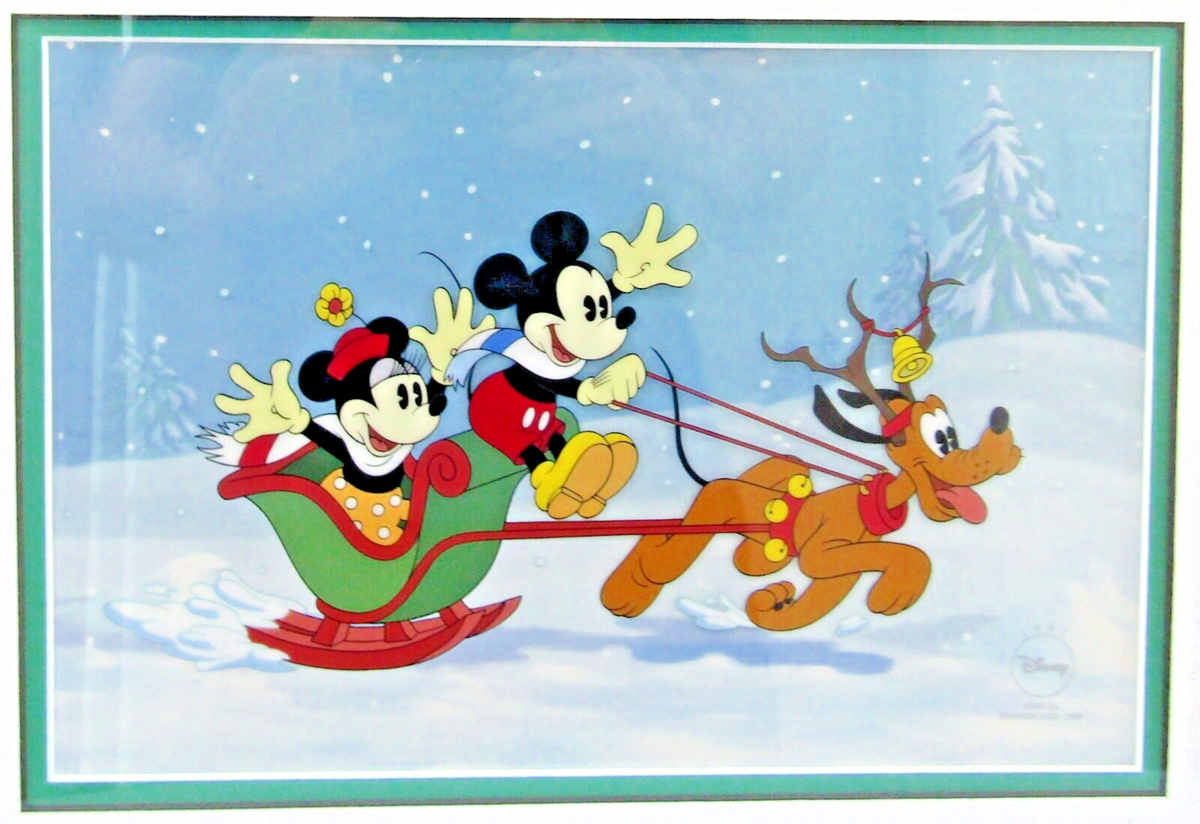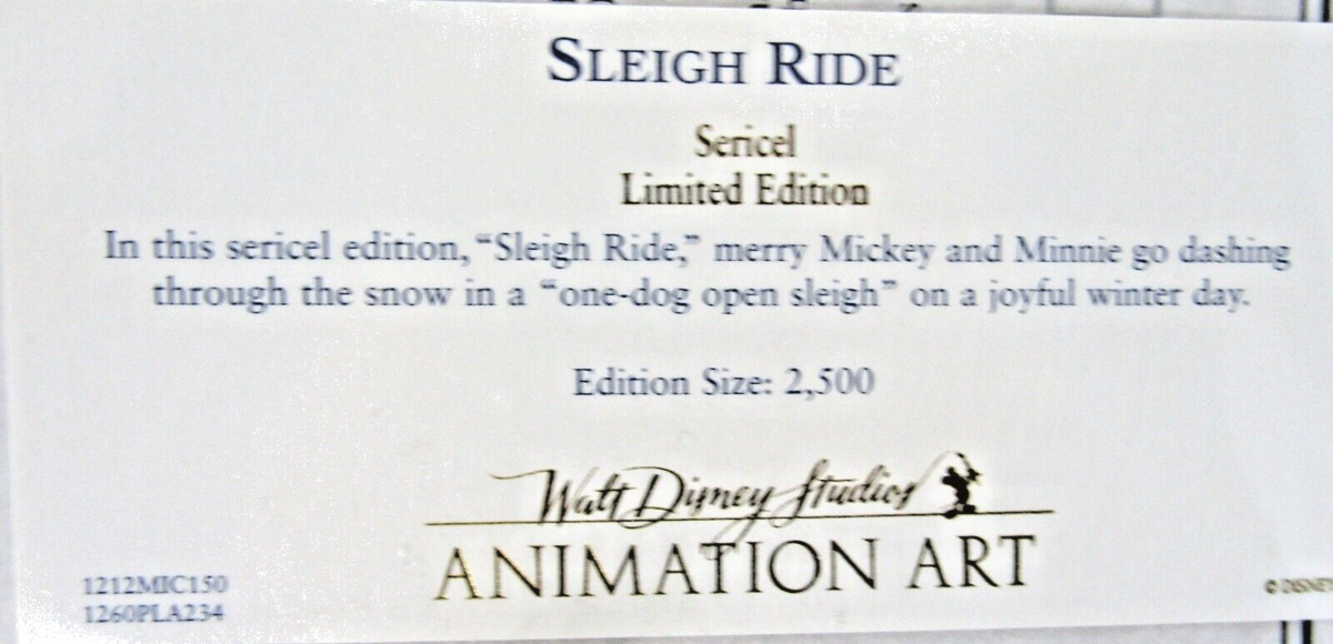 Mickey and Minnie Mouse "Sleigh Ride" Disney Sericel Framed Christmas Limited Edition with COA