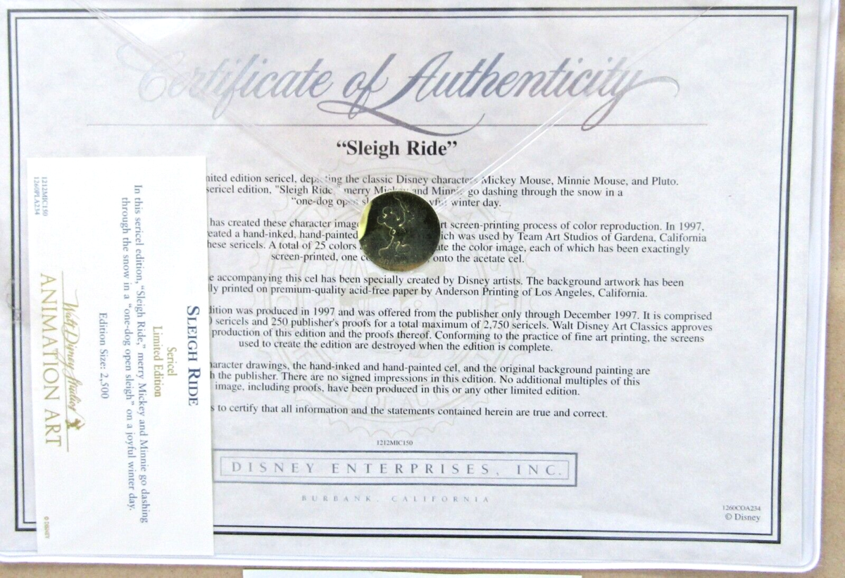 Mickey and Minnie Mouse "Sleigh Ride" Disney Sericel Framed Christmas COA