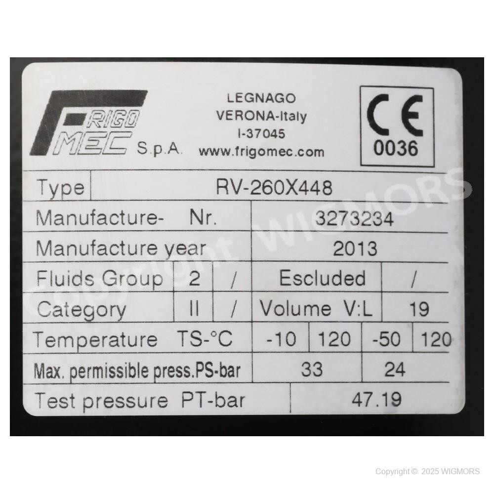 Liquid receiver Tank 19.0L 1 3/4" /35 mm ODS RV FrigoMec 260x448 1/2"NPT