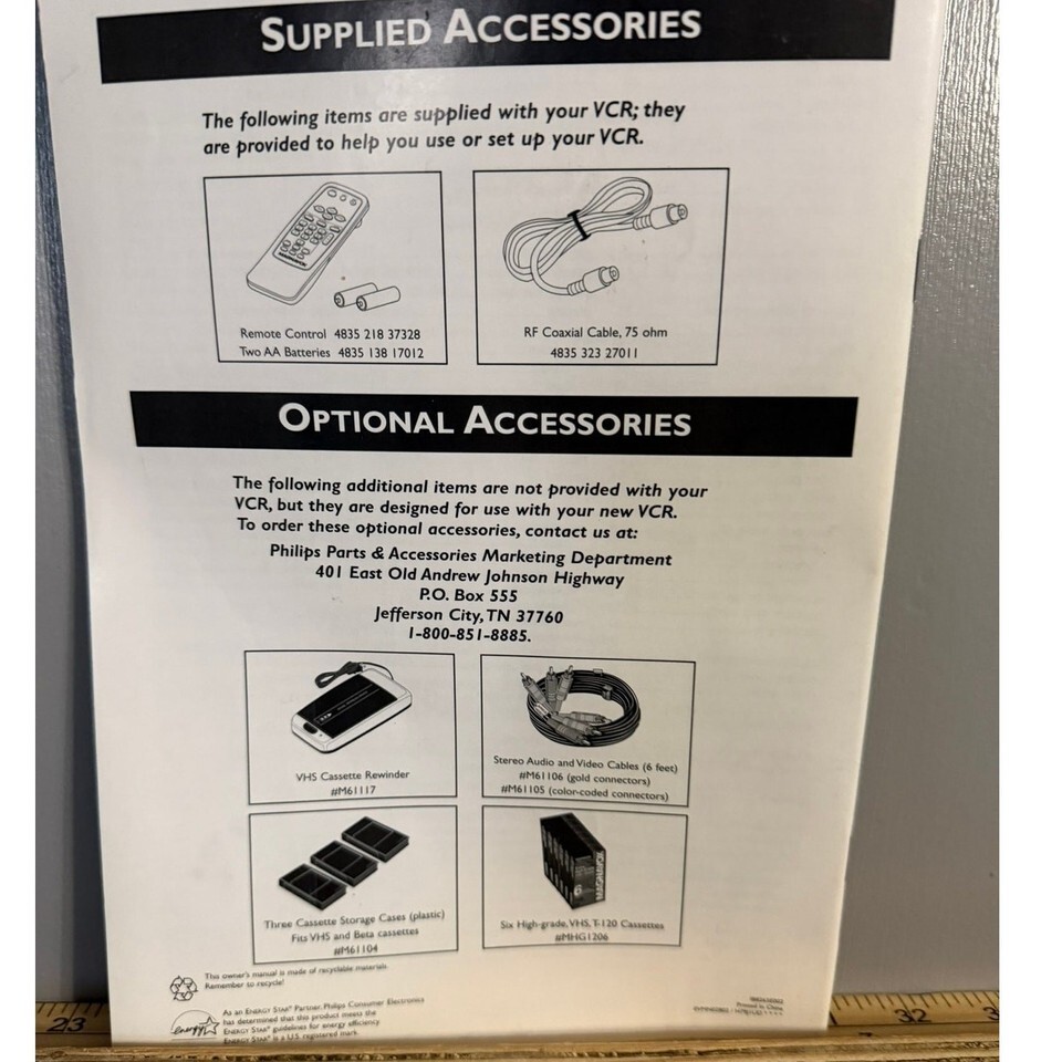 Magnavox VCR VHS Player Manual Operations and 50 similar items