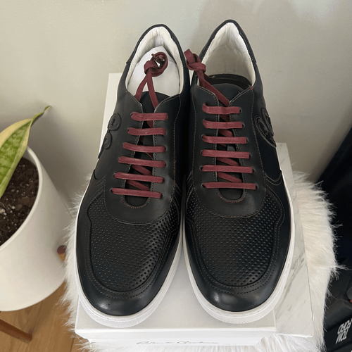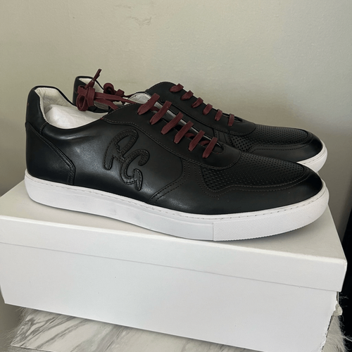 ROBERT GRAHAM Barrelman Leather Sneaker, Designer Black/Red Laces Size 11.5, NWT