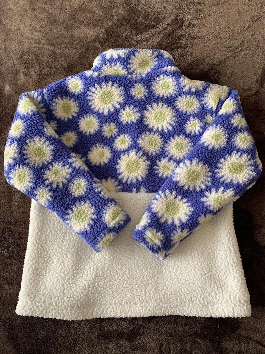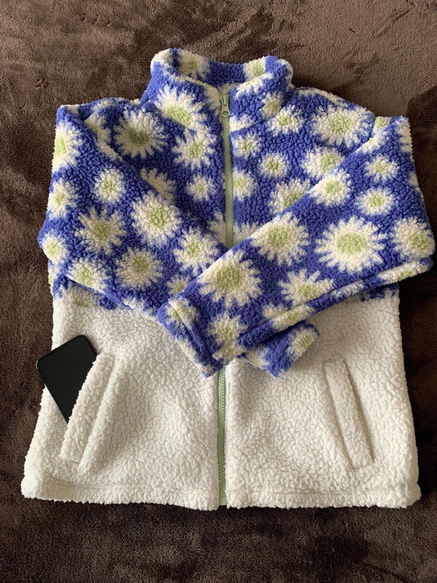 Cat & Jack Faux Fur Fuzzy Jacket Girls Size L (10/12) White & Blue