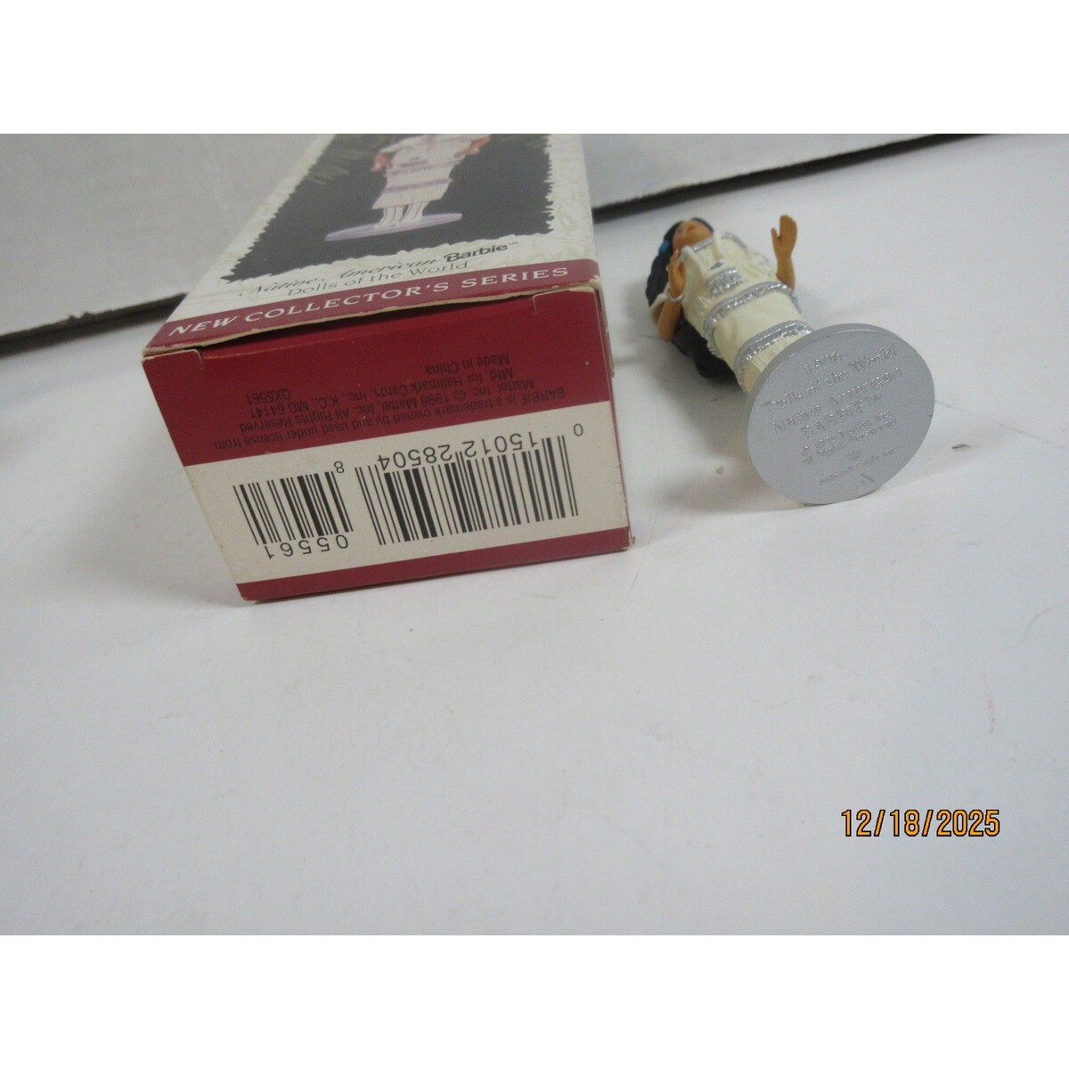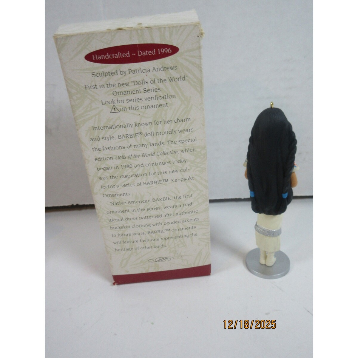 Keywords: Hallmark Keepsake, Barbie Ornament, Dolls of the World, Native American Barbie, Collector's Series, Patricia Andrews, 1996 Ornament, Holiday Decor, Christmas Ornament, Cultural Heritage, Doll Ornament, Keepsake Ornament