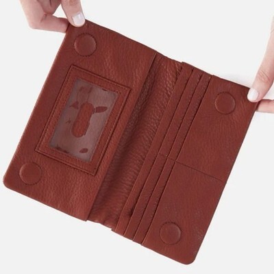 HOBO Lumen Continental Leather Bifold Wallet, Pebbled Leather Rust, NWT