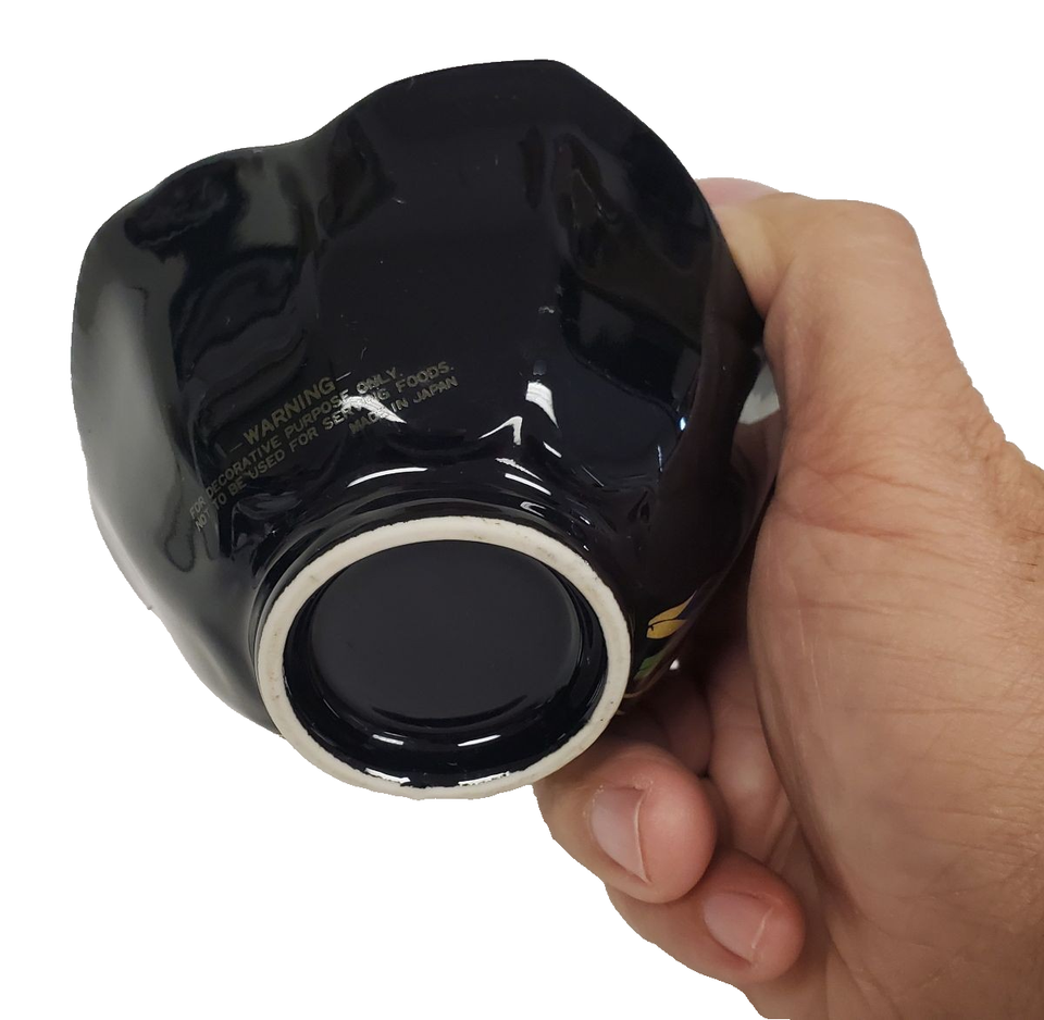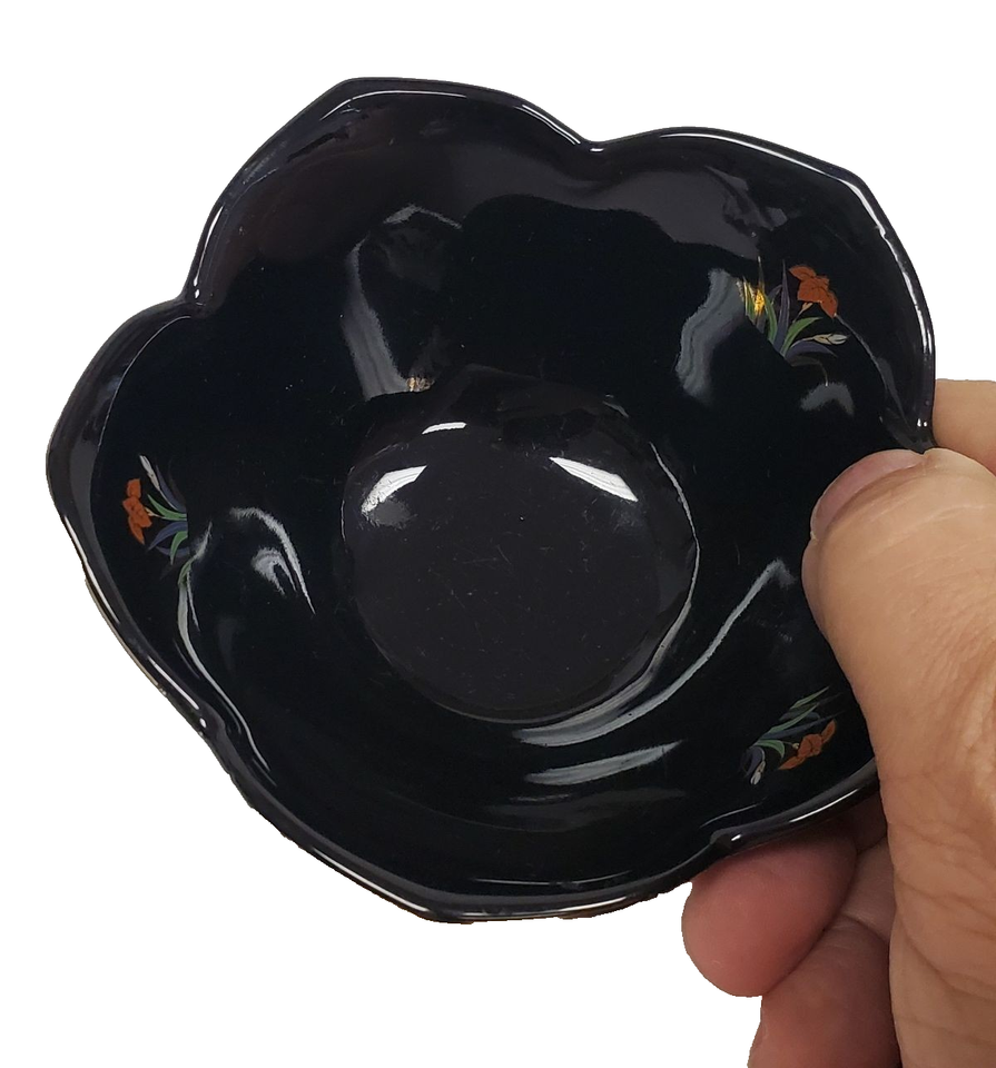 Vintage Black Fluted Porcelain Bowl ? 2.5? with Gold Rim Hand-Painted Floral Design | Elegant Decorative Dish, Collectible Fine China