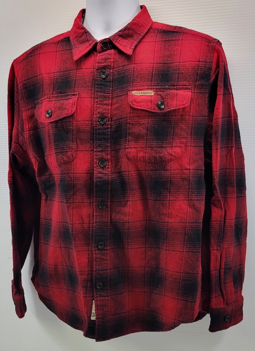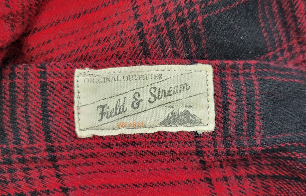 I) Field & Stream Men Red Plaid Button Down Long Sleeve Cotton Shirt XL