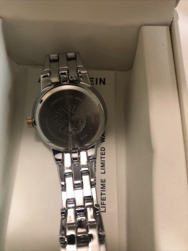 The Ann Klein Genuine Diamond Collection AK 1931svtt Women's Watch is a luxurious wristwatch designed for women. Featuring a stainless steel band with a combination of silver and gold colors, this watch is accented with sparkling diamonds on the dial. The watch comes with its original box and packaging, as well as papers, making it a perfect choice for those who appreciate timeless elegance and quality craftsmanship in their accessories.