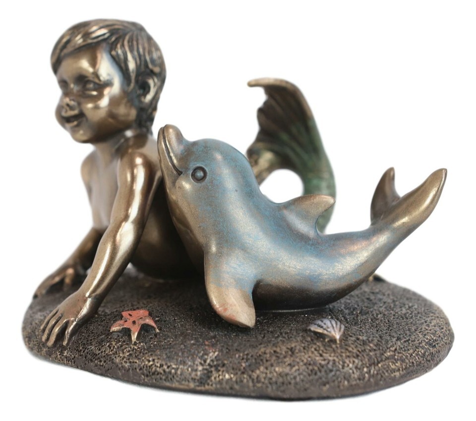 ? This Merbaby Dolphin figurine is made of designer composite resin, hand painted and polished individually.
