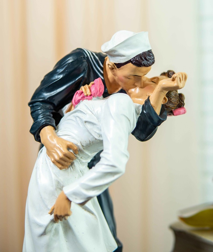 ? This V-J Day in Times Square Sculpture Of The Sailor Kissing A Nurse is Made of durable composite resin, hand painted and polished individually.