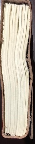 Hand tooled blank leather journal with embossing and embedded stone. 200 pages, latch closure, stones will vary. Its spine edge has attractive leather cross stitching, and the journal is secured by a latch lock. There are 200 blank hand-made pages. Measures approximately 5 x 7 x 1.25 inches.