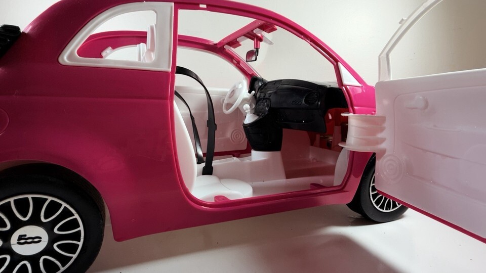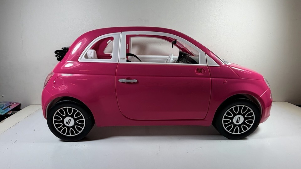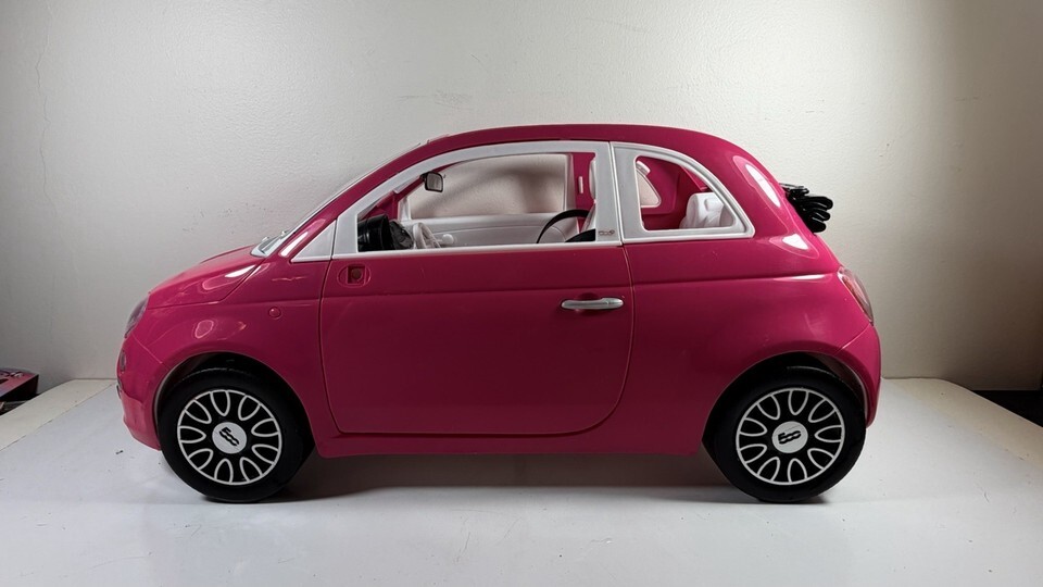 Barbie, Fiat 500, Convertible, Pink, Car, Vehicle, 4 Seater, Mattel, Doll Accessories, Toy, Sports Car, Opening Doors, Rare, Retired, Collectible, Italian Design, Glam.