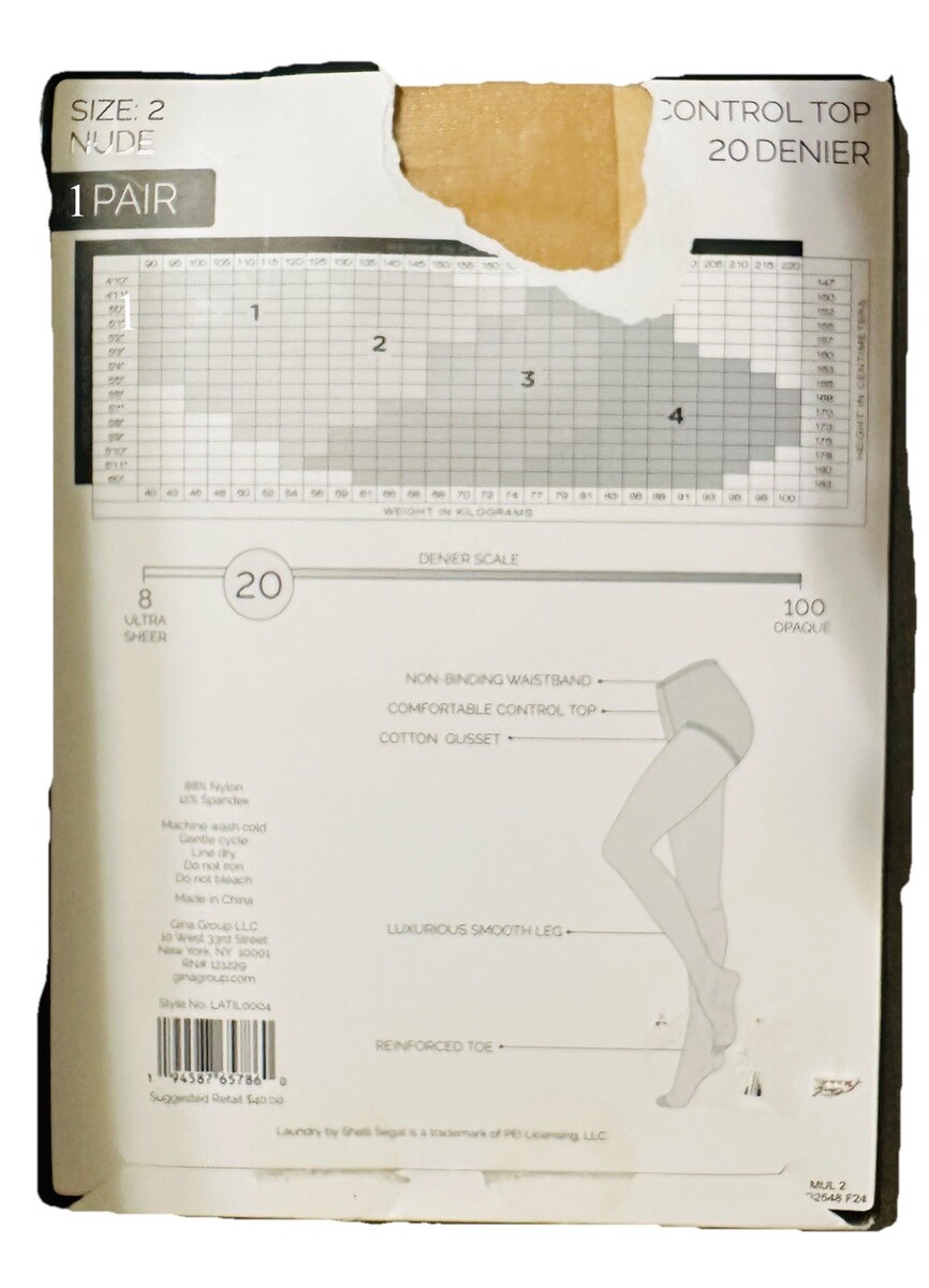 Laundry by Shelli Segal Luxury Sheer Pantyhose Size 2 Nude New NIP Control Top