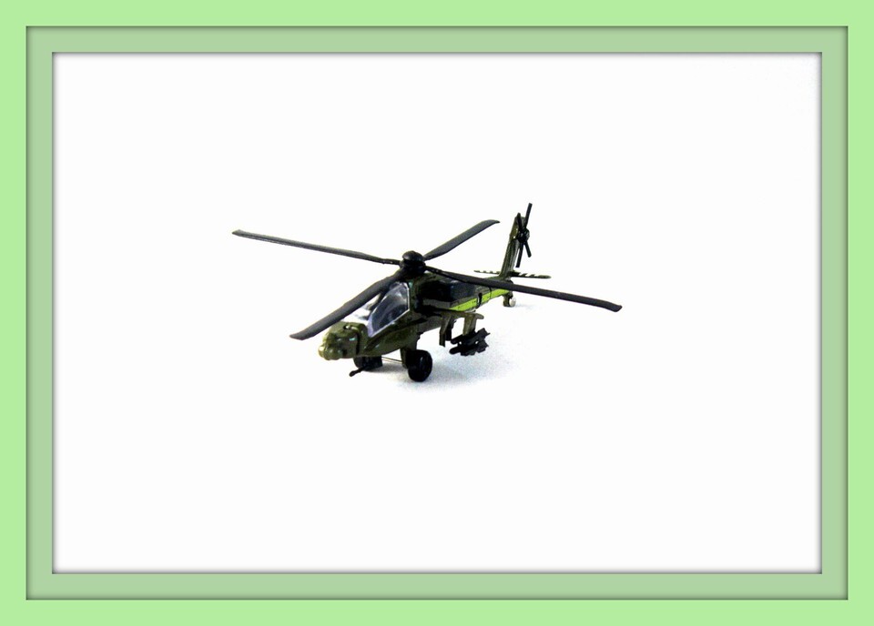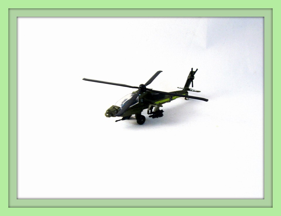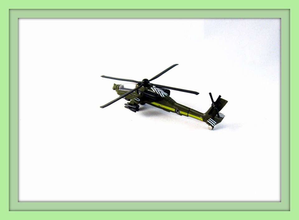 APACHE AH 64A MILITARY, MOTORMAX DIECAST HELICOPTER MODEL, 4.5 INCH