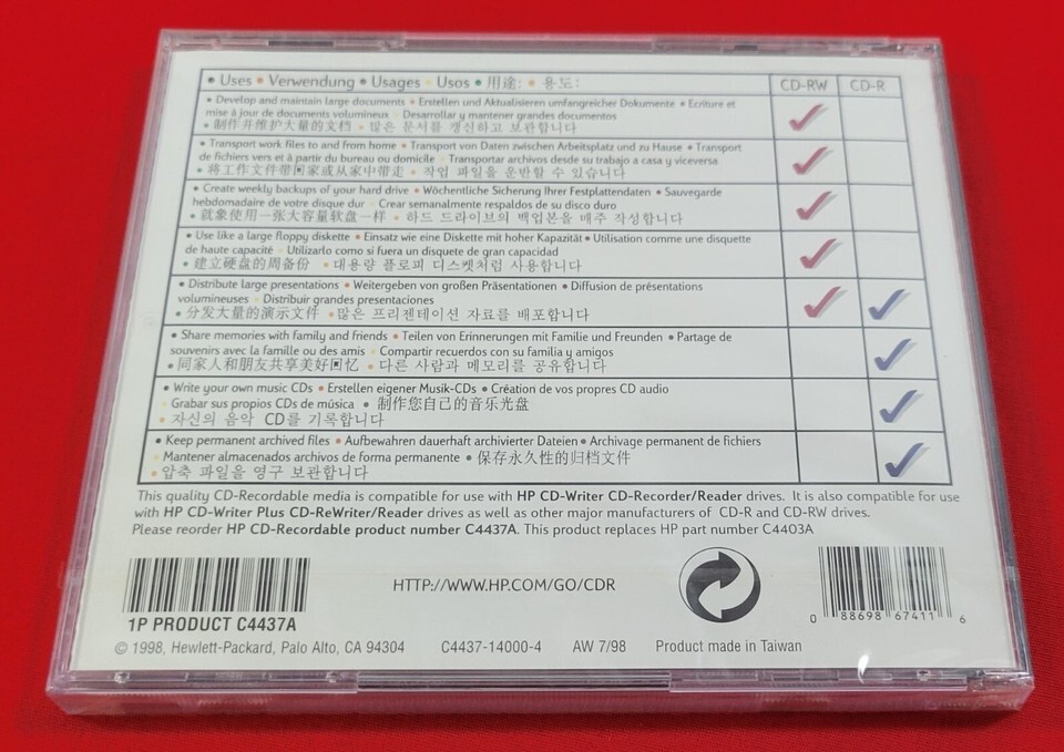 O) Hewlett Packard CD Recordable Media CD-R C4437A 650 MB/74 Minutes