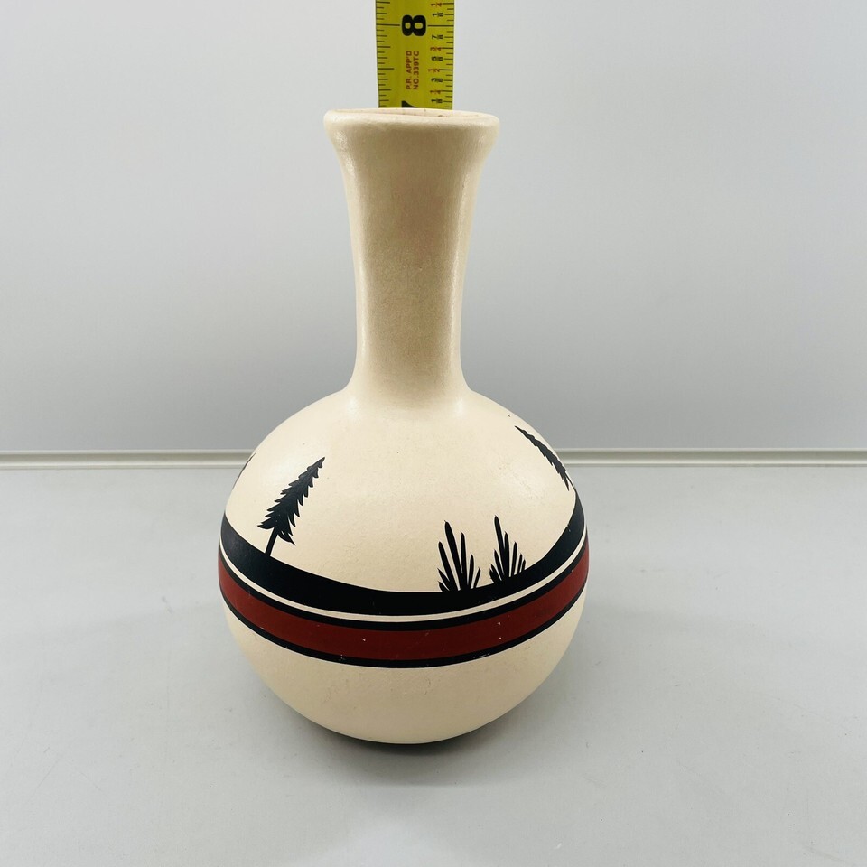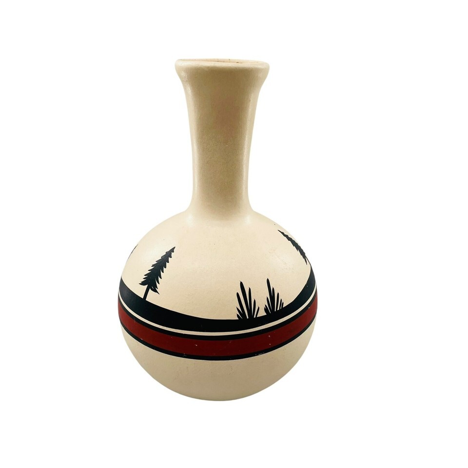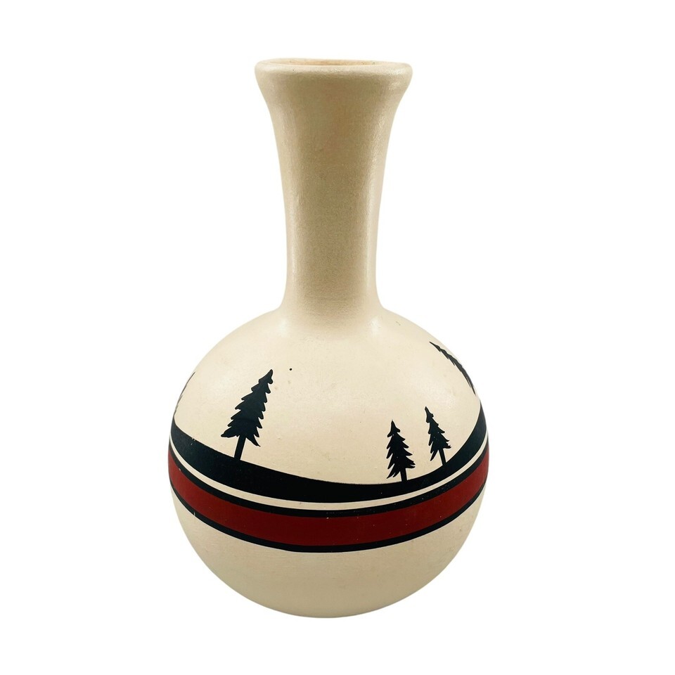 Vtg Native American TESA by Maack Co Hand Painted Pottery Vase Trees 7" Tall