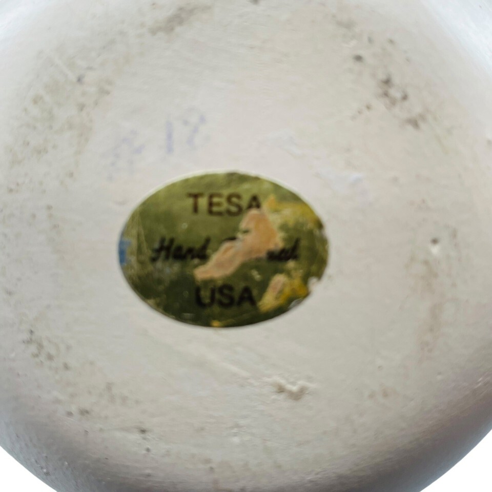 This vintage Native American TESA pottery vase is a true work of art. Hand-painted with exquisite attention to detail, this vase features a beautiful tree design that is sure to add a touch of elegance to any room. Made by Maack Co, this vase is a testament to their skill and dedication to Native American culture.
