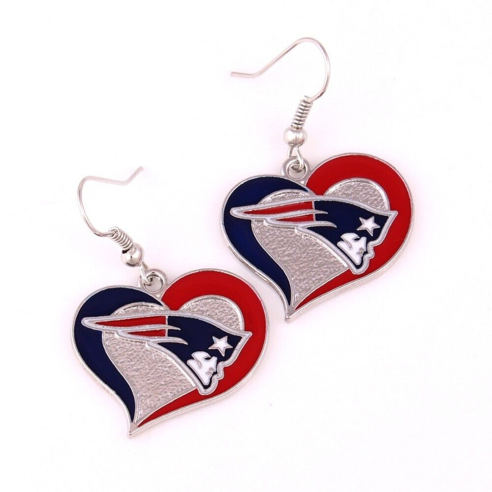 NEW ENGLAND PATRIOTS NFL SILVER SWIRL HEART DANGLE EARRINGS HYPO-ALLERGENIC