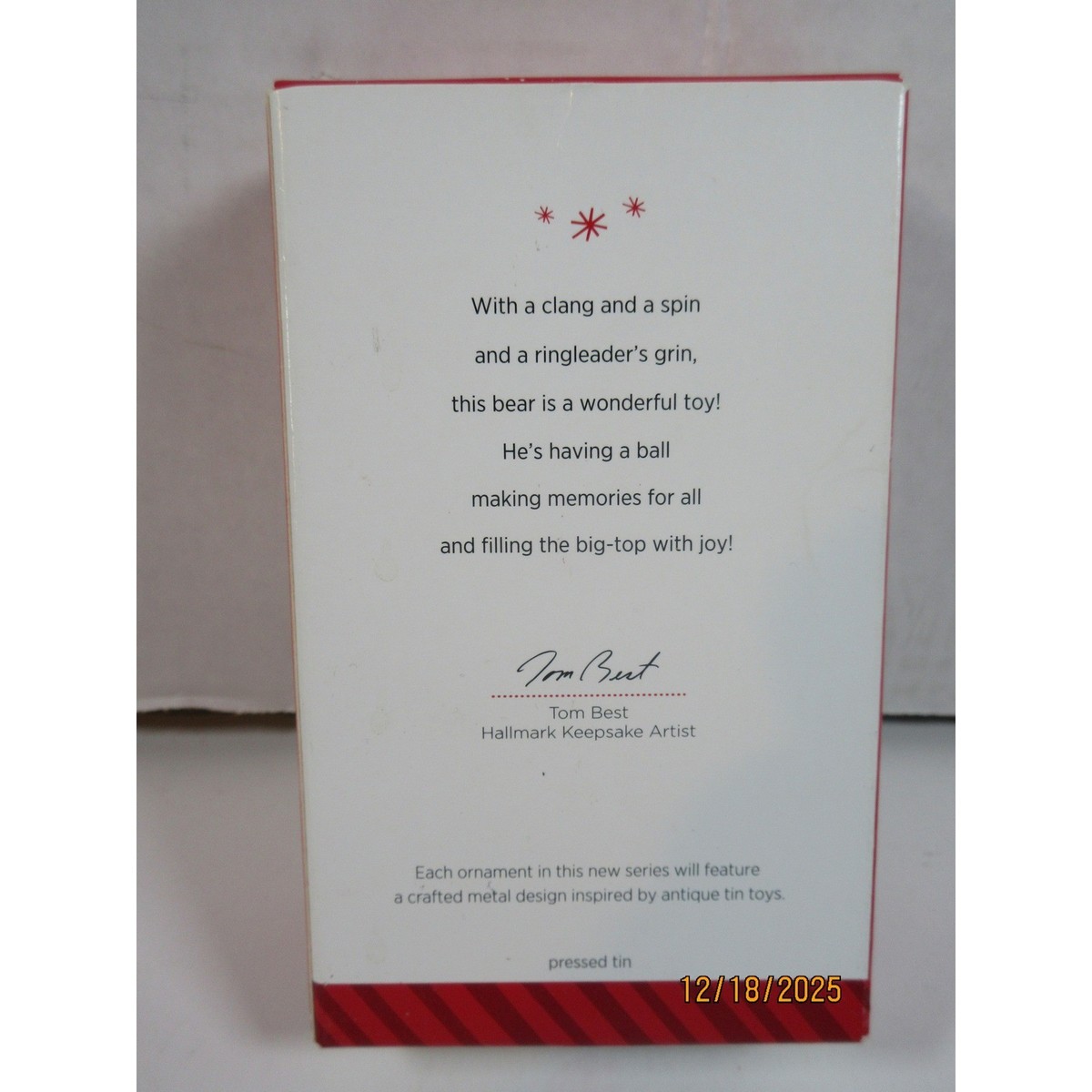 Keywords: Hallmark Ornament, Tin Toy Ornament, Circus Bear, Christmas Decor, Collectible Ornament, Holiday Gift, Vintage Toy, 2014 Ornament, First in Series, Whimsical, Festive, Children's Toy, Retro