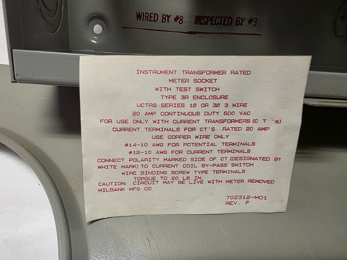 Schlumberger Type ST-0101 Watthour Meter 480V with Milbank Enclosure.
