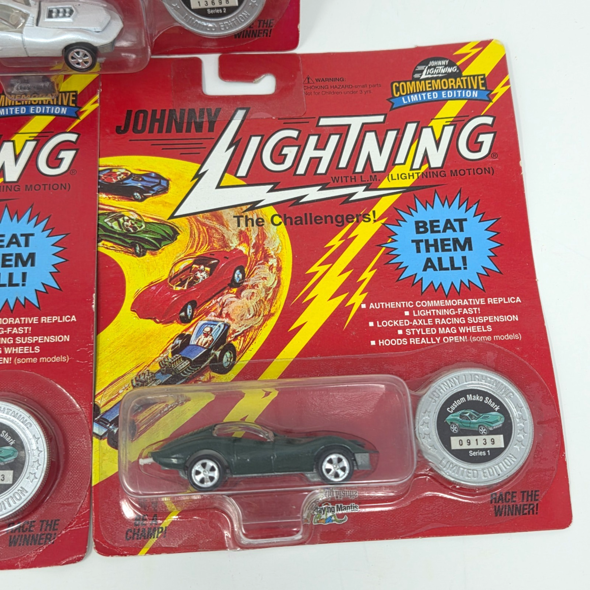 LOT OF 3 VINTAGE 1995 JOHNNY LIGHTNING CUSTOM MAKO SHARK CARS NEW ON CARD