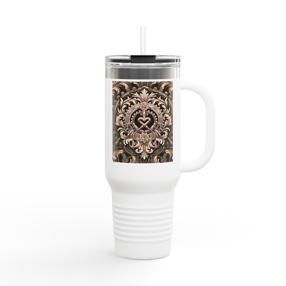 Victorian Baroque Steampunk Clockwork Heart 40oz Tumbler Filigree Rose Stainless