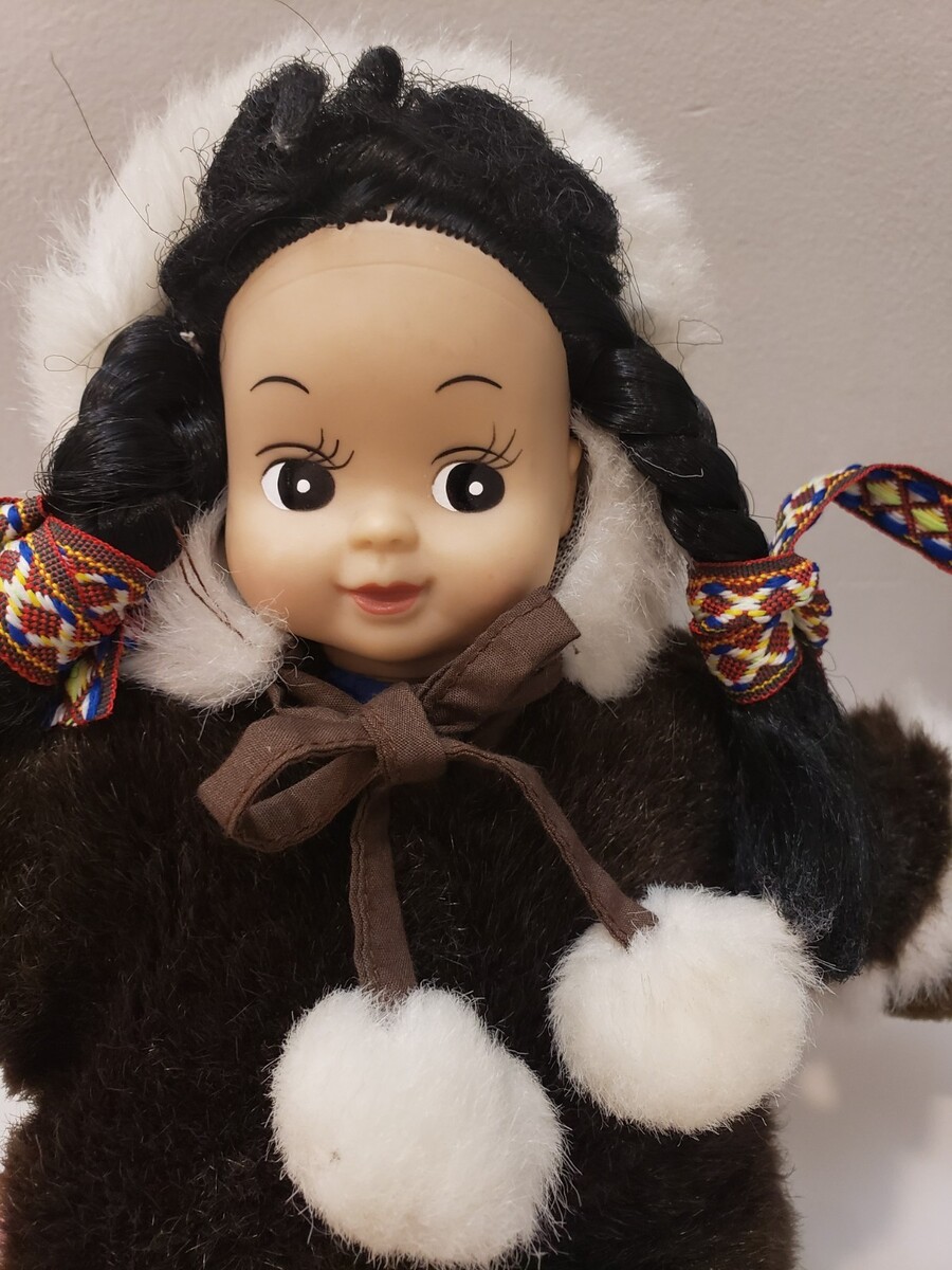VTG Hand Crafted Alaskan Native Style Doll Wearing Parka 11" Tall