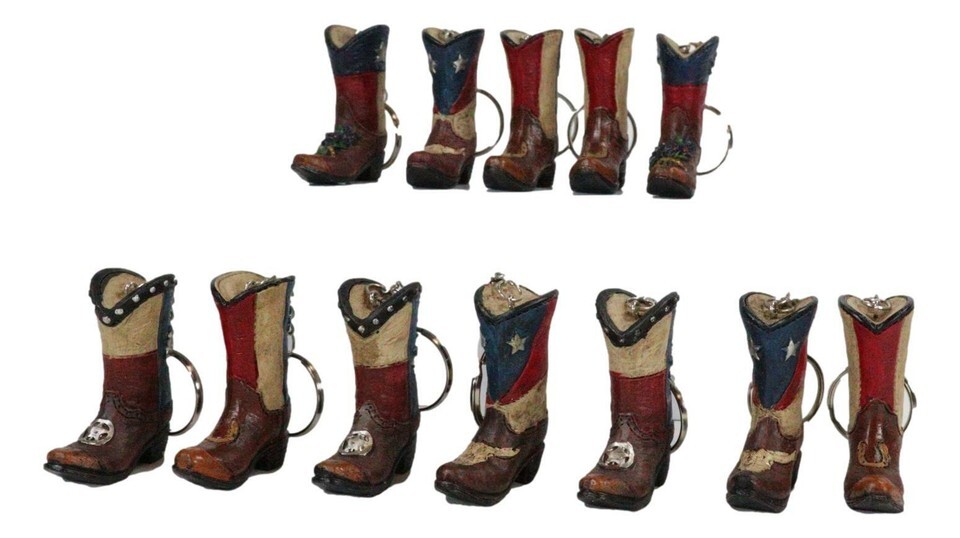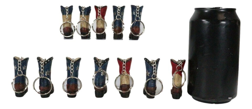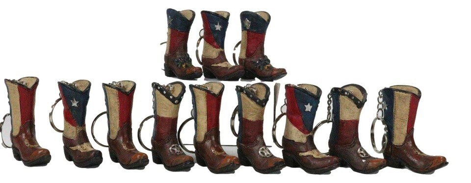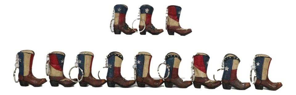 Ebros Pack of 12 Western Patriotic Texas Cowboy Faux Leather Boots Keychain Figurines