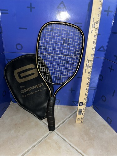 This listing is for one used WILSON TEMPEST PLUS RACQUET BALL RACQUET WITH LEATHER HANDLE AND COVER. It measures 3.75 inches circumferance in the grip. The grip has CO85 GW on it. Although used, the racket appears in great condition. Includes cover that zips up. String is tight and leather handles are in great shape. 18.5 inches by 8 inches in size. I am listing another of the same description and can combine shipping if you wish.