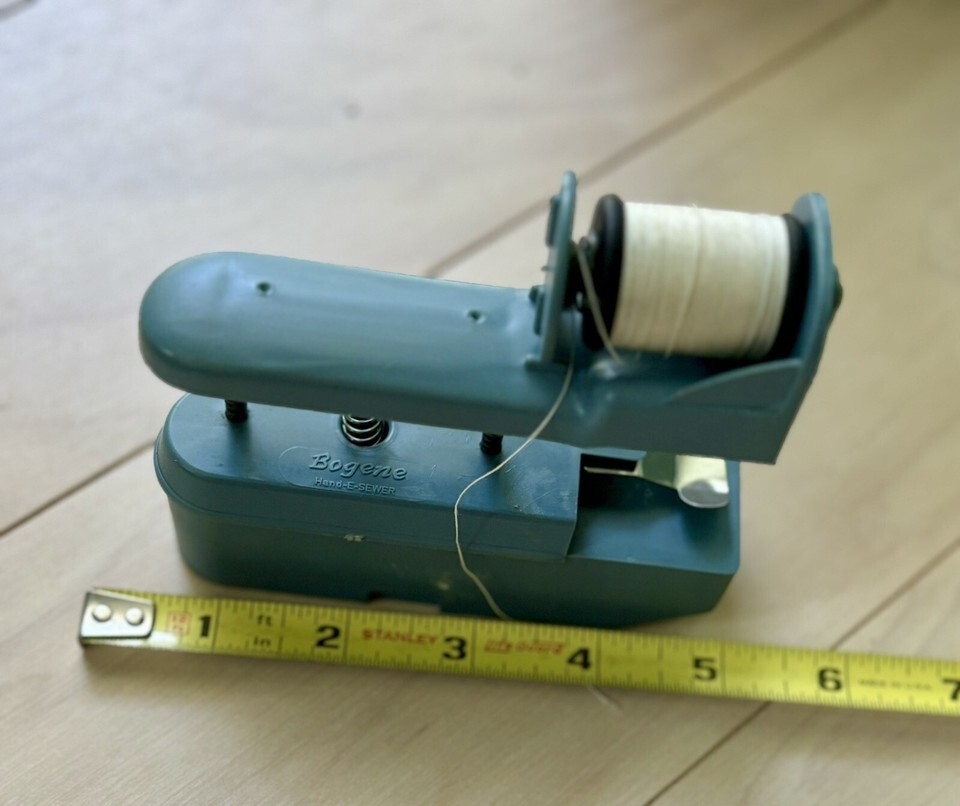 Up for bid is a vintage 1960s Bogene Hand-E-Sewer handheld sewing machine.