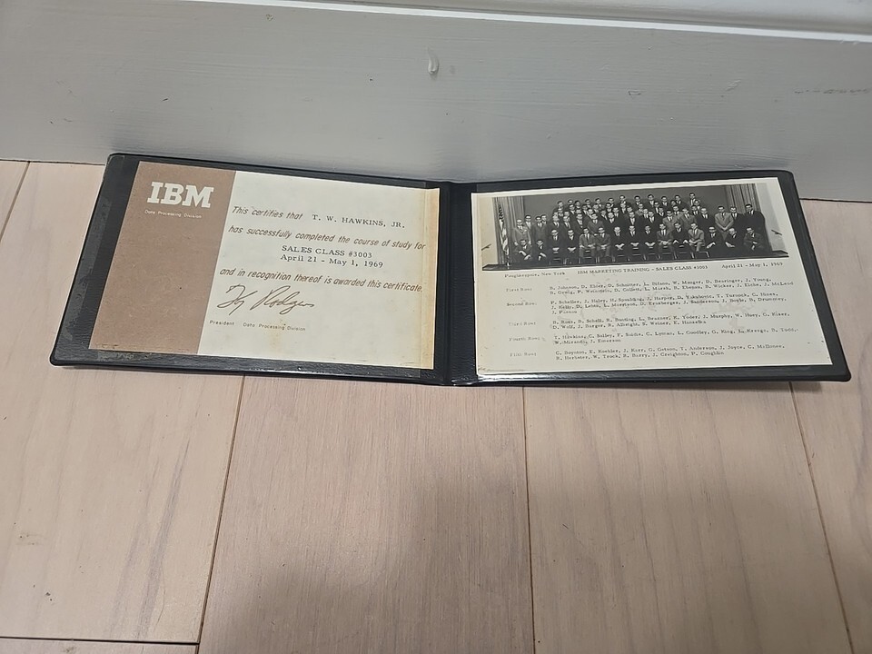 The vintage IBM 1969 Sales Class #3003 certificate is a rare and collectible item that signifies completion of a training program at IBM in 1969.
