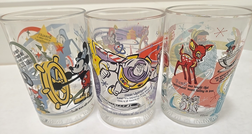 Up for bid is a set Of 3 McDonalds promotional Disney 100 Years Of Magic glasses