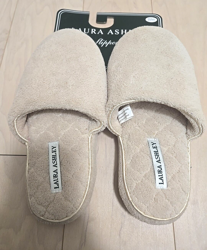 Up for bid is a pair of unused medium size Laura Ashley slippers .