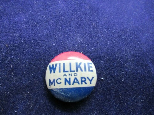 Up for bid is a Vintage 1940 Wendell Willkie and Charles McNary presidential campaign button.