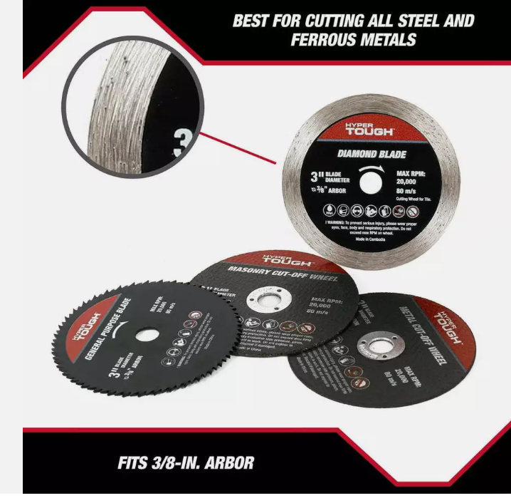 Introducing the Hyper Tough 4-Pack 3-Inch Aluminum Cut-Off Discs, perfect for your metalworking needs. These discs are designed with a wheel diameter of 3 inches, making them suitable for a variety of tasks.