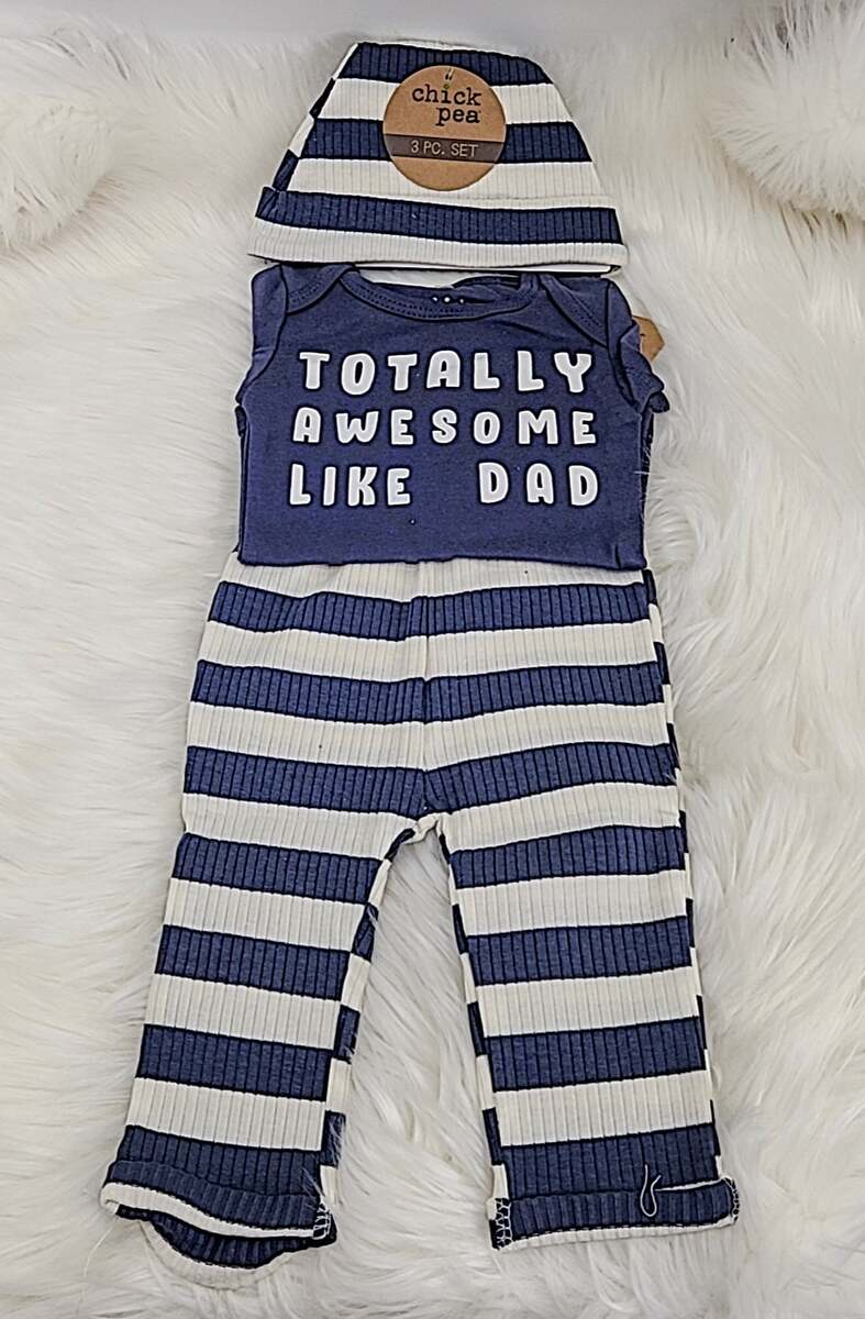 Item Notes: Chickpea makes it simple to get baby ready for the day with this cute and convenient three-piece cotton set. Bodysuit: crewneck; lap shoulders; graphic at front; snaps at bottom Pants: elastic waistband; allover print; footed Includes matching hat All cotton Machine washable Imported Due to variances in monitor color, and lighting, the color of some items may differ slightly from the photographs About us: Vanessa Jane is a family-owned business based in Indiana. We sell only authentic merchandise from brand new to used, and list new inventory daily. Make sure to put us on your favorites to see what's new each day! We source all of our inventory from reputable sales channels, including: Macy's Amazon Walmart Home Depot Office Depot Lowes Build.com And many more Box X160 (3-6/Blue-1)Box X160 (0-3/Blue-1)Box X160 (3/6/Light Blue-1)Box X160 (0-3/ Azul-1)Box X160 (3-6/ Navy-1)Box X160 (0-3/ Navy-1)Relisted: by Martha RusselListing SKU: VJ6896568402005