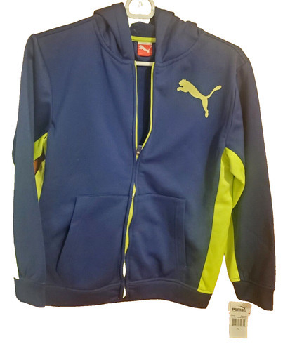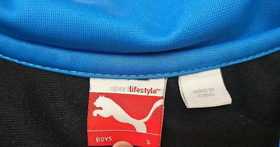 Puma Sport Lifestyle YouthFull Zip Warmup Jacket Black Royal Blue Boys Size 5 Q