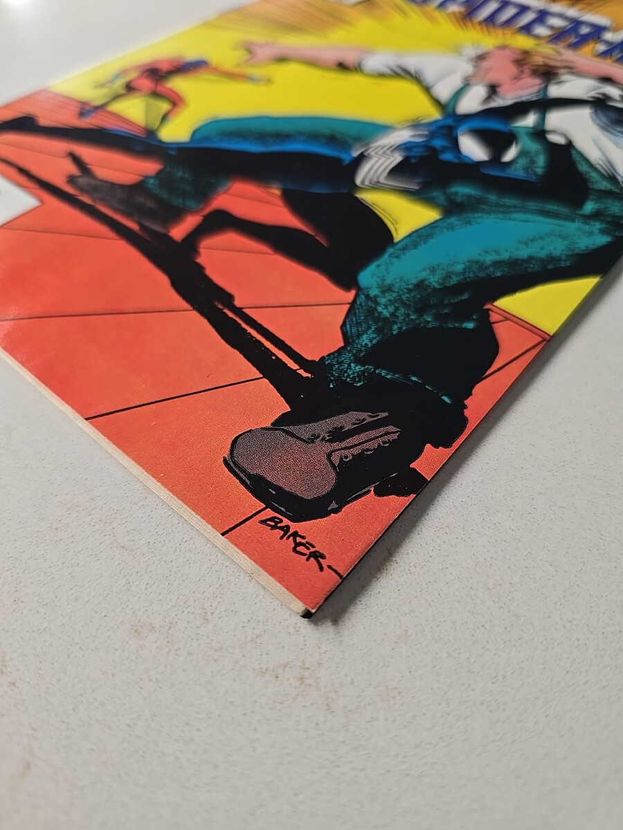 The product is "Web of Spider-Man #9" published by Marvel Comics in December 1985 during the Copper Age era. The comic features characters like Spider-Man (Peter Parker), Ludlow Grimes, and Smithville Thunderbolt, with artwork by David Michelinie, Vince Colletta, Geof Isherwood, and George Roussos. The cover art is done by Kyle Baker, and it falls under the genre of superheroes, written in English, and part of the US Comics tradition. This collectible comic book is a part of the Web of Spider-Man series and includes direct features.