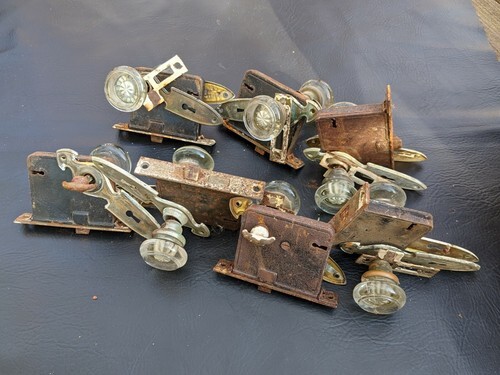 7 Antique Crystal Door Knob Sets Matchbox Lock Victorian Architectural Salvage