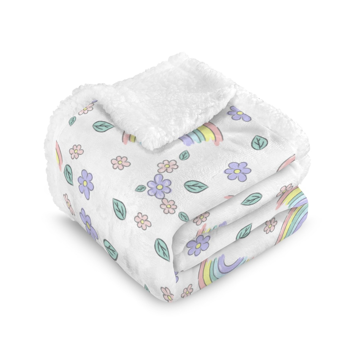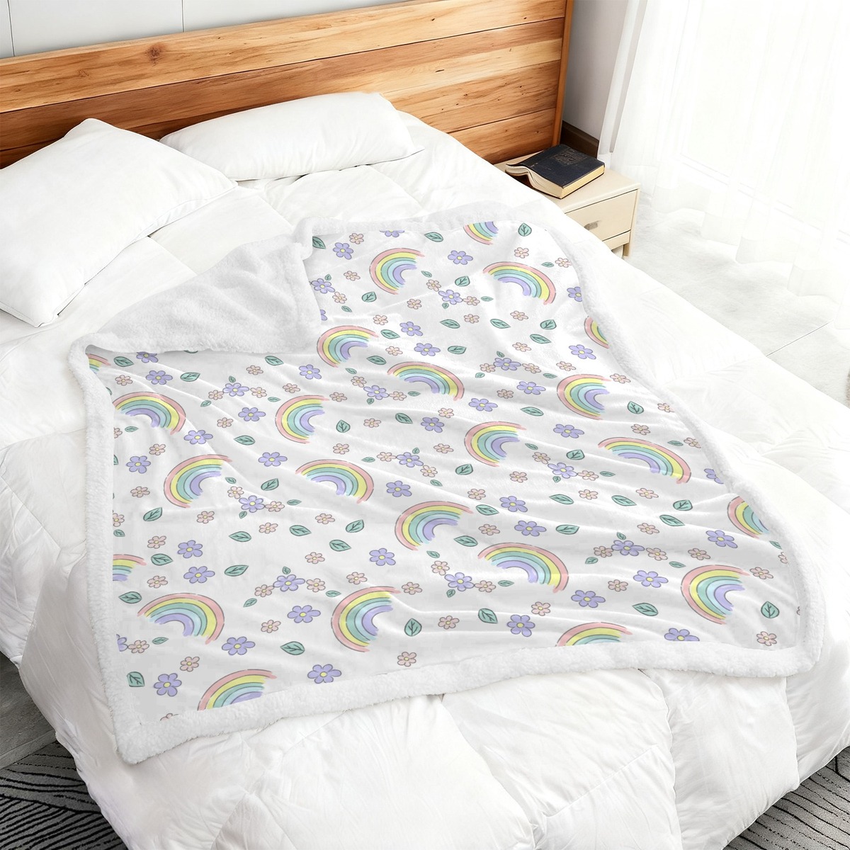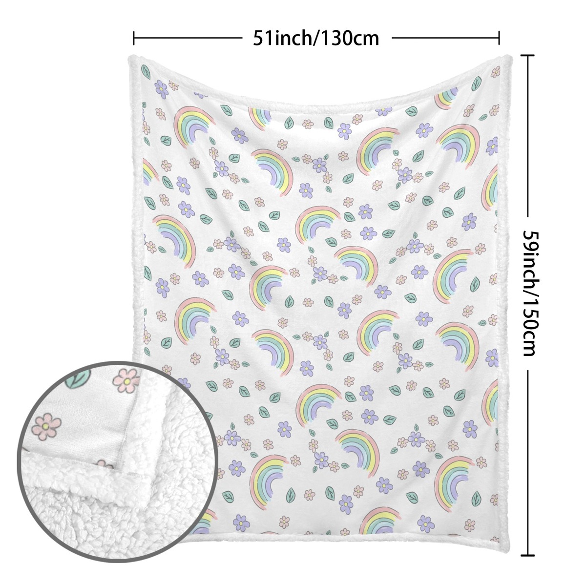 Rainbow and Flower Double-Layer Flannel Sherpa Blanket 51" × 59"