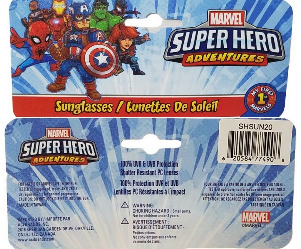 1 Pair - Marvel Avengers 100% UVA UVB Protection Shatter Resistant Sunglasses (ages 3+) NWT