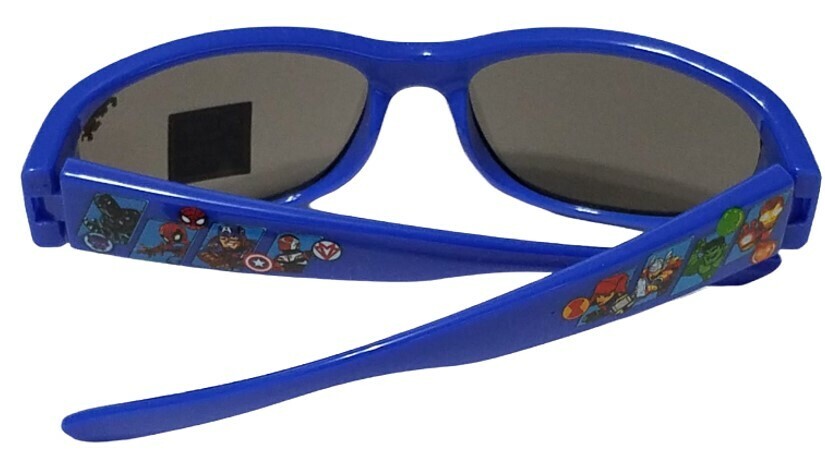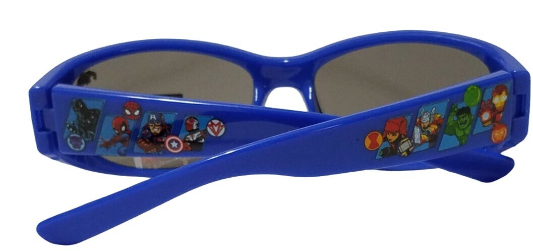 This is a pair of Marvel Avengers blue sports wrap kids' sunglasses.