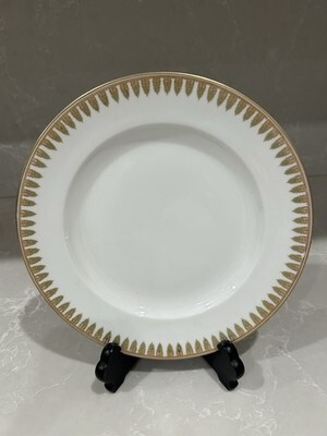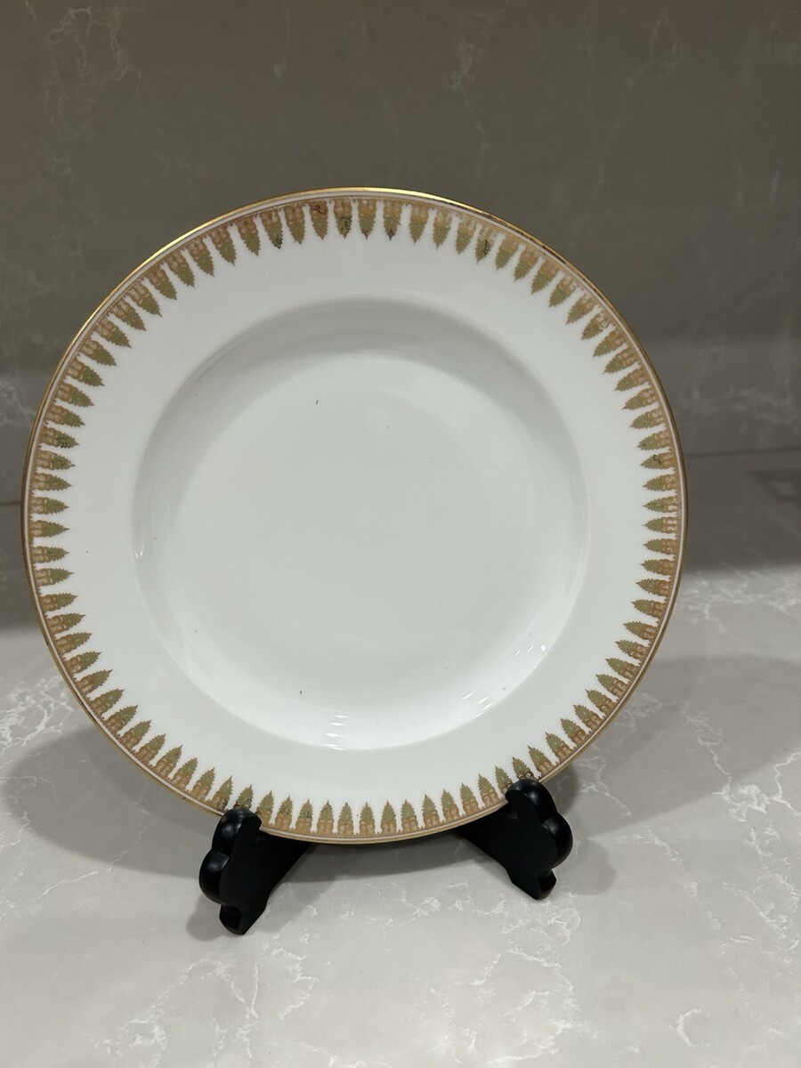 Beautiful Gold Green Verge decoration. 280 Porcelain Luncheon Plate is a luxurious and elegant piece of dinnerware that hails from the renowned Limoges region in France. Made from high-quality porcelain, this luncheon plate is perfect for serving meals with style and sophistication. The intricate designs and craftsmanship of Haviland Limoges make this plate a timeless addition to any dining table or collection of decorative cookware and serveware.