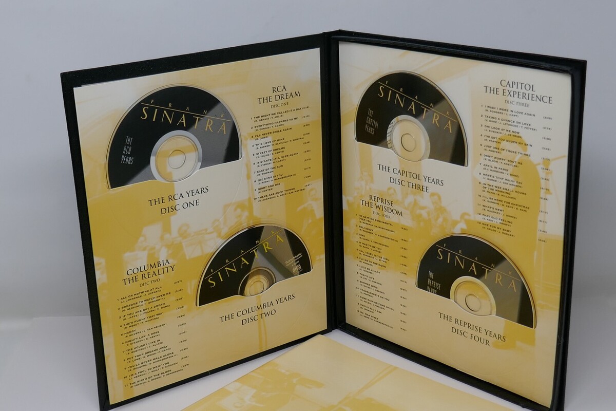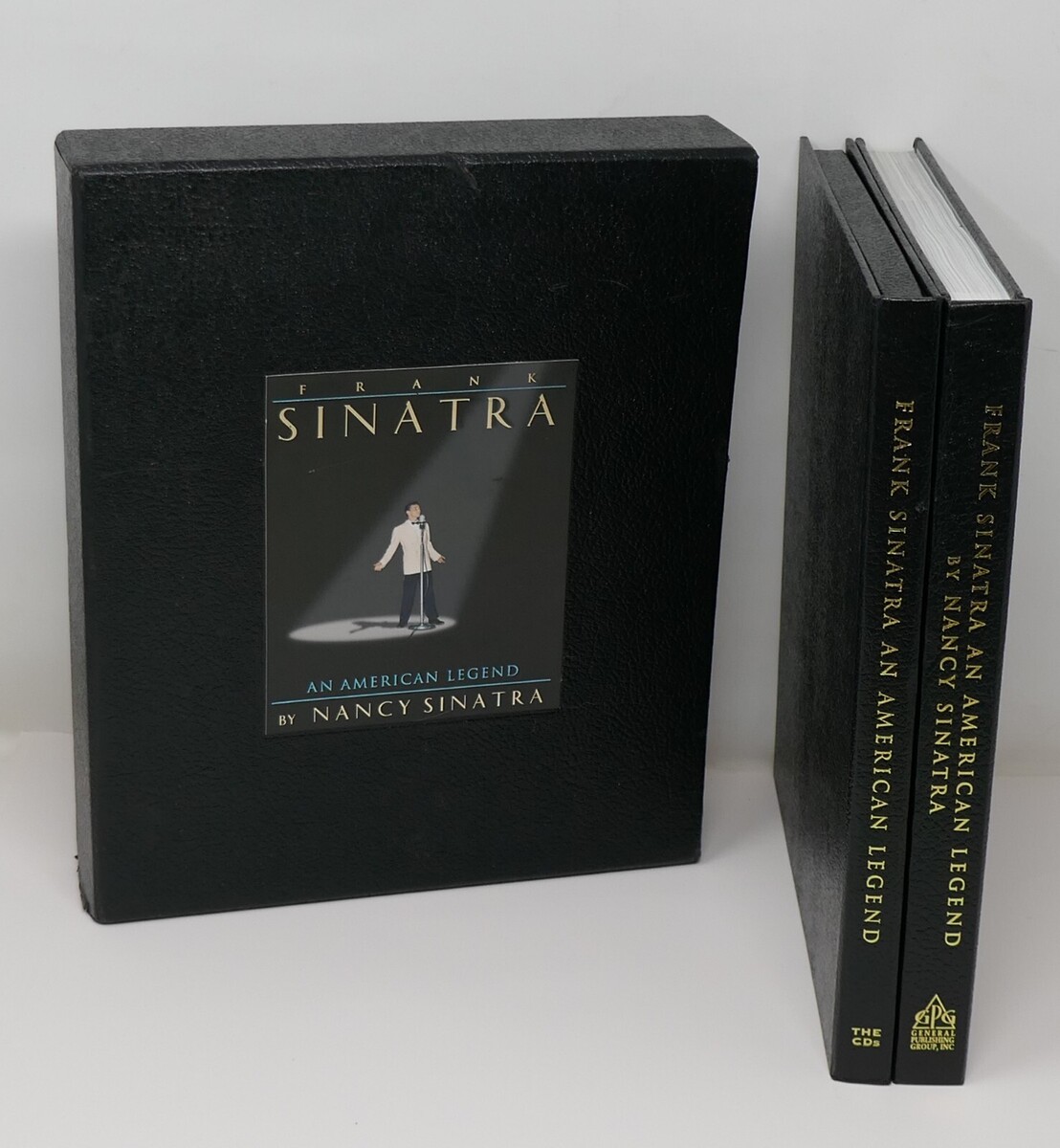 Up for sale is a collection titled Frank Sinatra: An American Legend by Nancy Sinatra. This includes a hard cover book with very little wear with a CD in the back and a collection of 4 CDs of his music. The CDs have a few small marks which does not effect playability. Comes in a hard slipcase which has little wear.