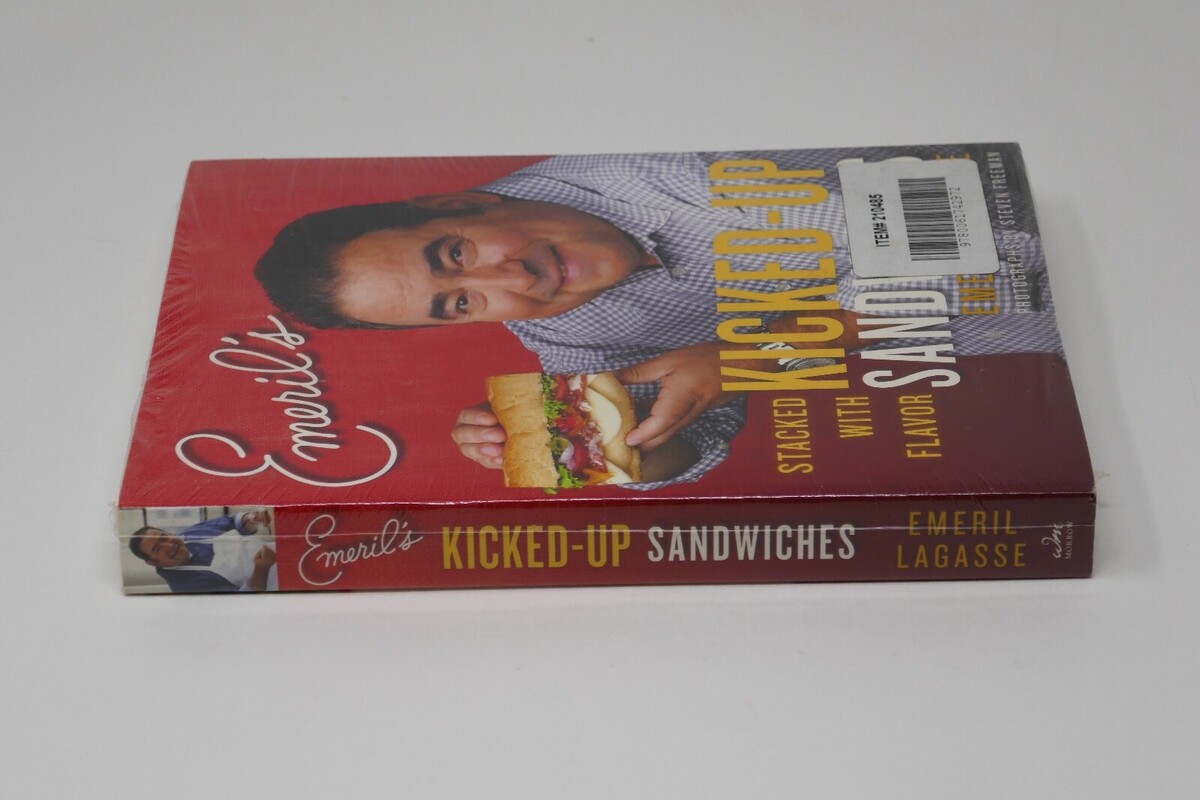 Up for sale is a paperback book titled Emeril's Kicked-Up Sandwiches : Stacked with Flavor by Emeril Bagasse. This is sealed in plastic.