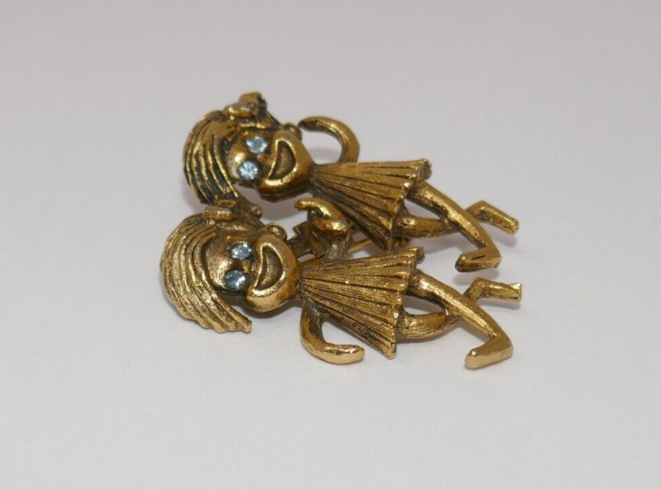 Vintage Gold Tone Figural Twins Rhinestone and 49 similar items
