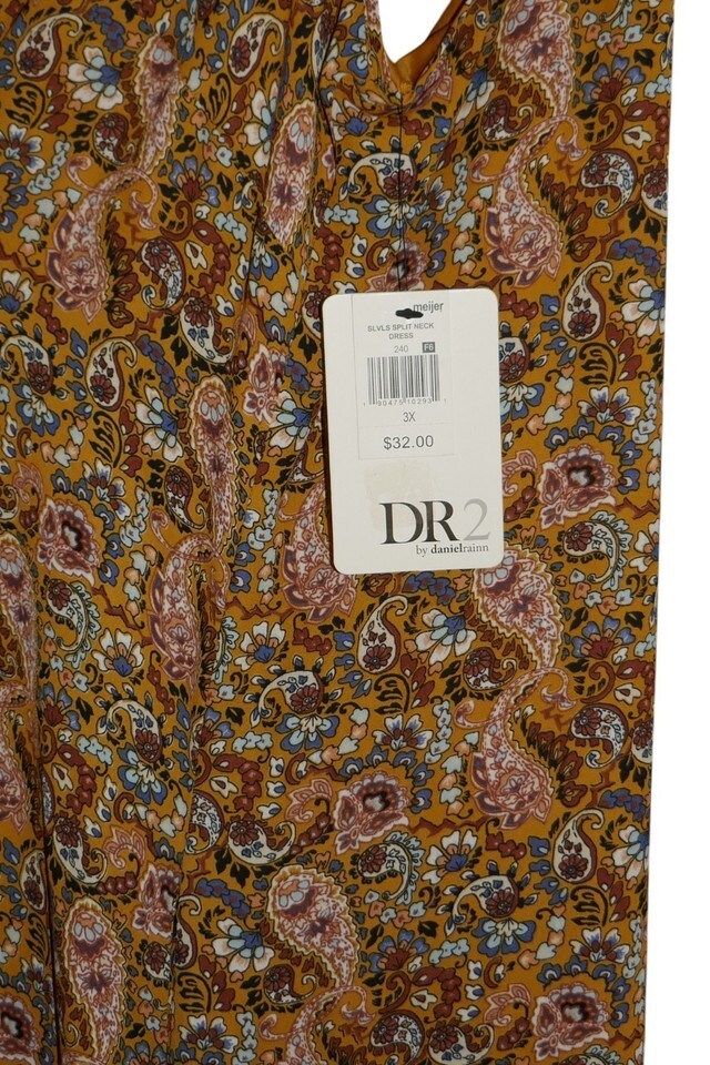 DR2 by Daniel Rainn Mustard Paisley Print Sleeveless Boho Dress Size 3X NWT