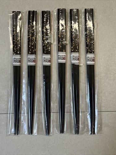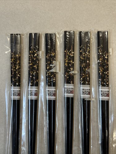 Japanese Bamboo Chopsticks 2 Pair Vtg Hashi Reusable Tableware Black & Gold