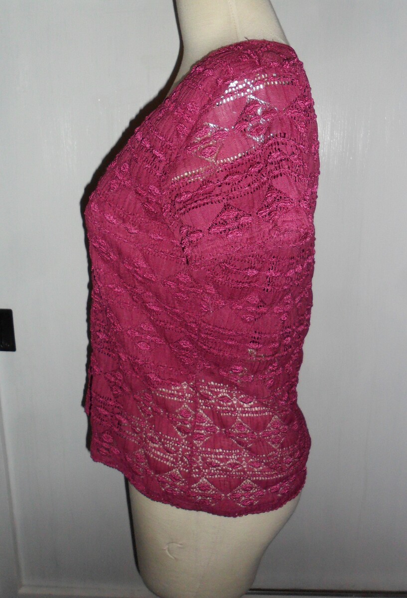 The Worthington Women's Stretch Short Sleeve Top in Fuchsia features a knit pattern with a colorful design that is perfect for various occasions such as travel, parties, or business settings. Made of polyester and spandex, this top has a classic fitted sleeve style and an elastic V-neckline for a comfortable fit. The pullover closure and machine washable care make it convenient for everyday wear during the summer, fall, and spring seasons. Ideal for a size XL, this top by the brand Worthington offers a stylish and versatile addition to any woman's wardrobe.